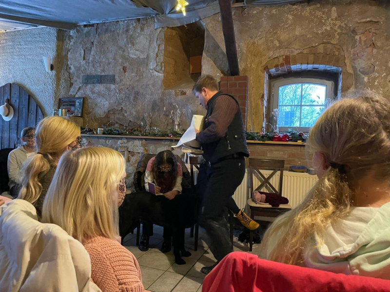 Regelmäßig ist er auf unserem Hof zu Besuch und gibt Reitunterricht. Am 17.12.2022 war das Wetter leider zu schlecht, um aufs Pferd zu steigen, also sind wir kurzerhand in den Theorieunterricht gewechselt.
