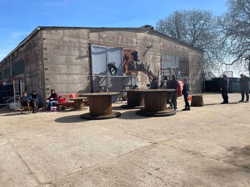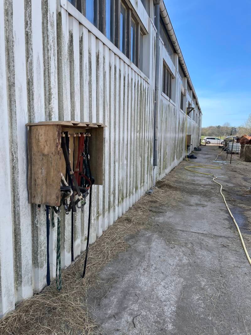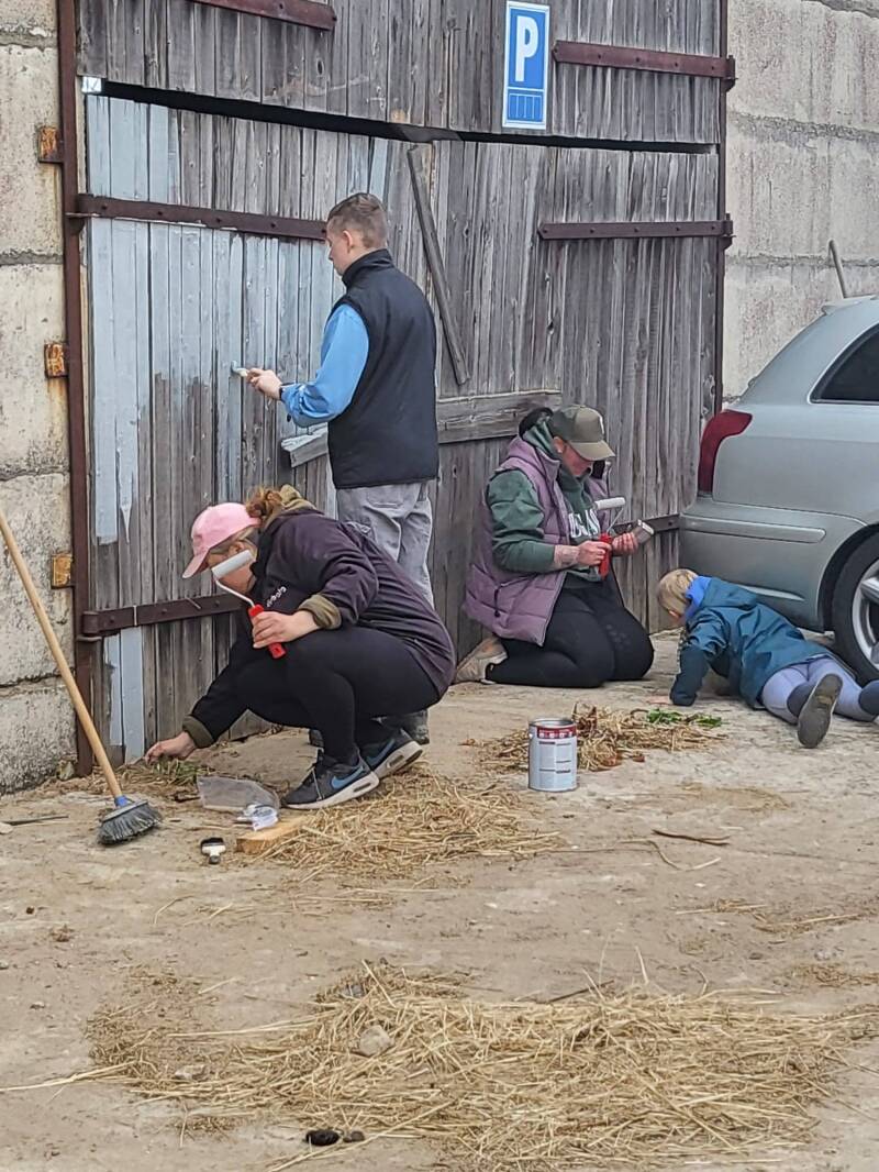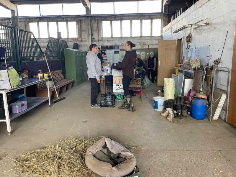 Zusätzlich standen viele Renovierungs- und Verschönerungsarbeiten an: Der Hühnerstall sowie die Hallentore bekamen einen frischen Anstrich, die Paddocks wurden abgeäppelt, und die Kabeltrommeln, die künftig als Tische dienen, wurden gestrichen. Außerdem entstanden neue Heuraufen, Halfterhalter wurden montiert und ein neues Tor am Eingang gesetzt.